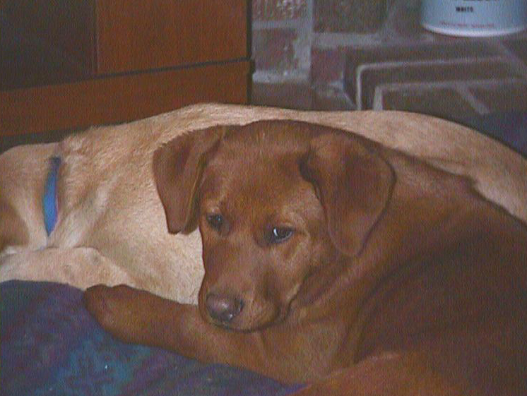 Christmas. They're yellow lab, female litter mates. The yellow one
