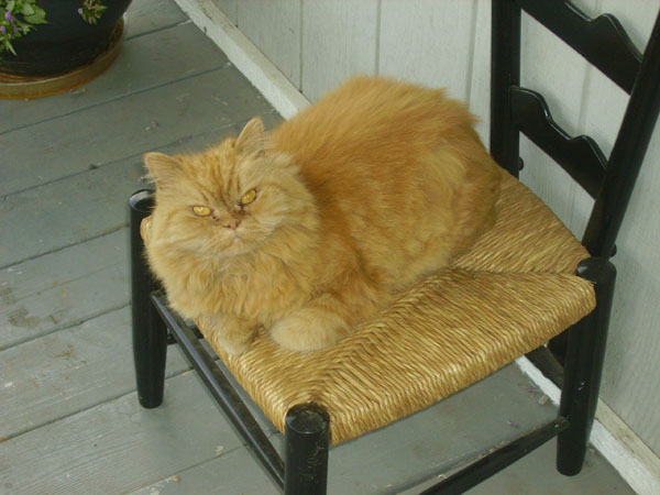 she appears. She has taken possession of the pouting chair on the front porch...somehow
